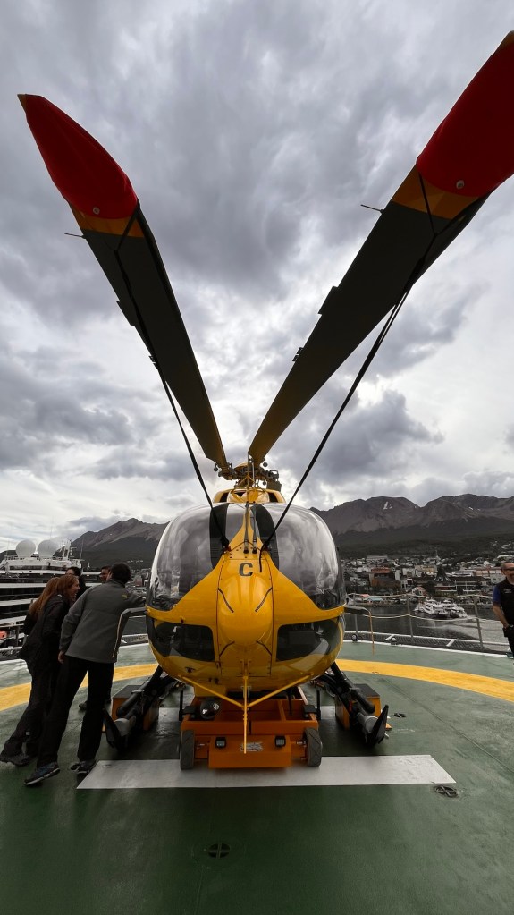 On board had a snack, a ship briefing, a coat fitting and best of all, a helicopter inspection.